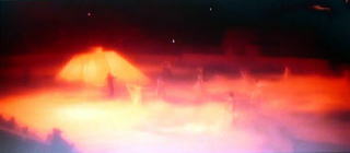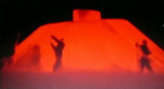 紙製樽前山の図面 中に照明とダンサー ダンサーが山から出てくる